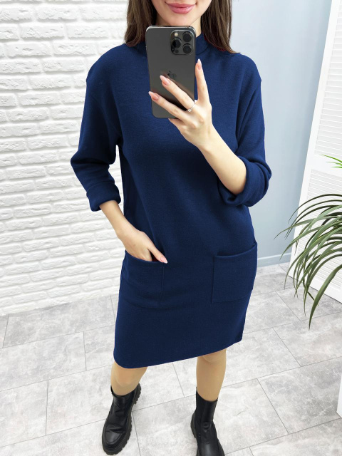 Тепла сукня з двосторонньої ангори «Debra» оптом | Батал Темно-синій, 50-52