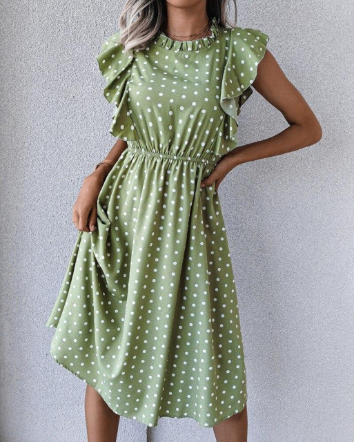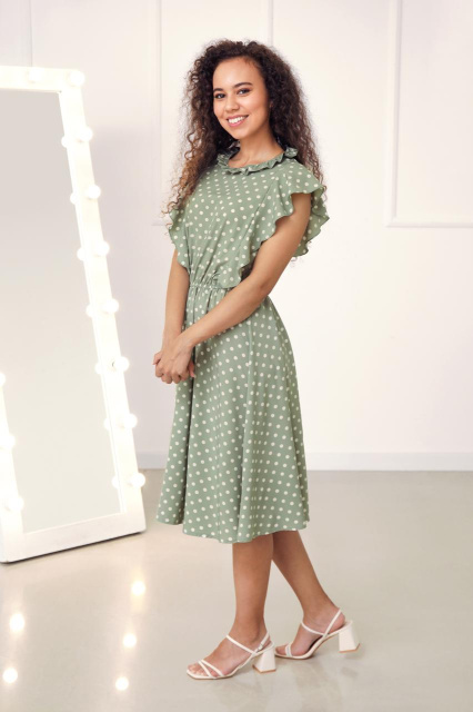 Сукня в горошок з воланами «Emily» оптом | Розпродаж моделі Оливковий, 42-44