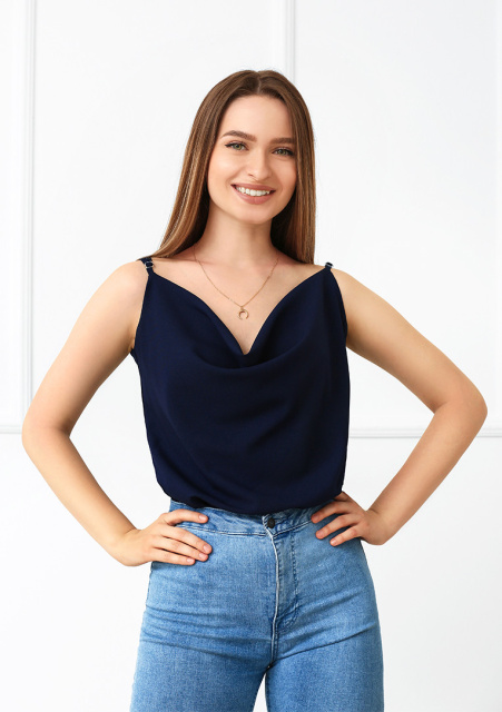 UA MarketВінницяGhjhgТовари та послугиЖіночий одяг оптом по 95 грнЛітня блузка на тонких бретельках «Argo» Темно-синій, 46-48
