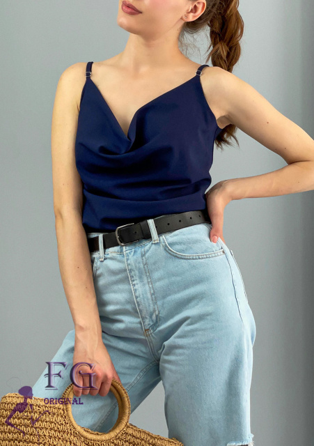 Літня блузка на тонких бретельках «Argo» Темно-синій, 46-48