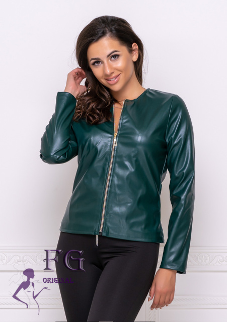 UA MarketВінницяGhjhgТовари та послугиКуртки жіночі оптомТонка демісезонна куртка-жакет з екошкіри «Delmar» оптом | Розпродаж моделі 46, Темно-зелений