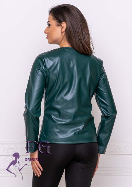 Тонка демісезонна куртка-жакет з екошкіри «Delmar» оптом | Розпродаж моделі 46, Темно-зелений