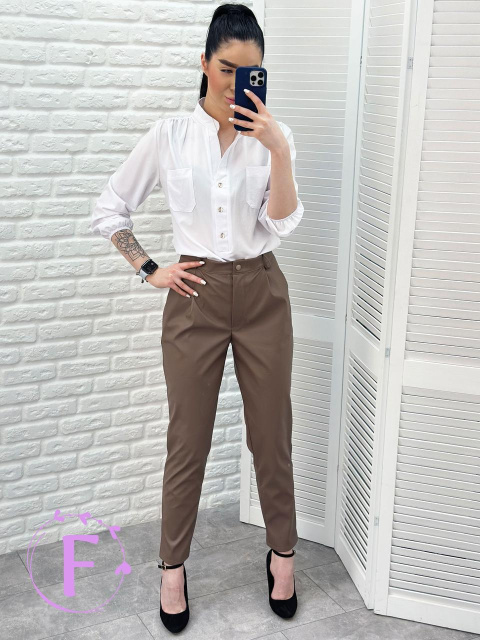 Прямі брюки з екошкіри «Arden» оптом | Розпродаж моделі 42, Мокко