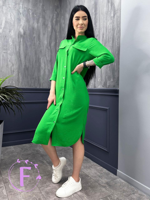 Довга сукня-сорочка з поясом "Marcella" Роздріб (не дропшипінг) – 515 грн Також в наявності . Легка і стильна сукня-сорочка - ідеальне вбрання для сучасної модниці, незалежно від стилю, віку і фігури. З платтям «Marcella» від Fashion Girl можна виглядати елегантно, не жертвуючи комфортом. Завдяки прямому крою і повітряній тканині виріб м'яко облягає фігуру, підкреслюючи її переваги. Особливості моделі Характеристики сукні "Marcella": - сезон – весна/літо; - фальшиві кишені на грудях; - пряма планка з ґудзиками; - відкладний комір; - довжина сукні - міді (нижче коліна), довжина рукава - ¾, з відворотом; - матеріал – американський жатий креп. Знімний пояс із тієї ж тканини, що й сорочка, дозволяє зробити акцент на талії. Щоб створити оригінальний образ, можна використовувати тонкий шкіряний ремінець замість пояса, що йде у комплекті. Сукня-сорочка "Marcella" виконана з американського жатого крепу. Тканина має м'яку шорстку поверхню та цікаву текстуру. Оригінальне переплетення ниток робить американський креп легким, але щільним. Завдяки цій сукні акуратно маскує недоліки фігури, але не втрачає легкості та не обтяжує образ. Сукні з жатого крепу швидко сохнуть і добре зберігають форму та колір після численних прань. Виріб рекомендується прати за низької температури (30-40 градусів). Якщо сушити плаття у вертикальному положенні, йому не потрібно прасування. Чому варто обрати Fashion Girl Fashion Girl – це приємні ціни, висока якість та зручні умови для дропшипінгу. У нашому інтернет-магазині ви можете замовити стильні та актуальні , , та інші новинки для власного гардеробу. Ми обробляємо та відправляємо замовлення за 24 години! Характеристики Стиль:Casual Сезон:Весна/літо Довжина по спинці:110 см Довжина рукава:42-43 см Матеріал:Американський креп Наявність на складі Цвет 42-44 46-48 Чорний ✓ ✗ Фрезовий ✓ ✓ Графит ✗ ✗ Зелений ✓ ✓ Капучино ✓ ✗ ✓ — в наявності (кількість не обмежена). ✗ — немає в наявності (знято з виробництва). АКЦІЇ ТА ЗНИЖКИ ПОДАРУНОК ПРИ КУПІВЛІ ВІД 3-Х ОДИНИЦЬ При купівлі від 3 од. будь-якого товару в одній посилці, не включаючи позицій з розпродажу та розділу "Все по 95" ДОДАТКОВА ЗНИЖКА При покупці від 25 од. будь-якого товару в одній посилці (акції не підсумовуються) Наші переваги Весь товар в наявності Відправка за 24 години 100% як на фото Найвигідніші ціни Обмін та повернення Гарантія якості