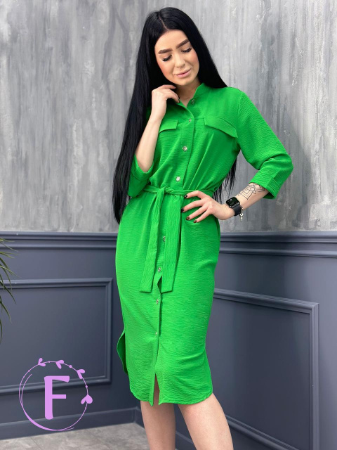 Довга сукня-сорочка з поясом «Marcella» оптом | Норма | Розпродаж моделі Зелений, 46-48