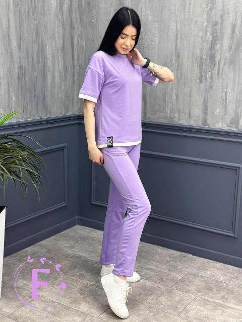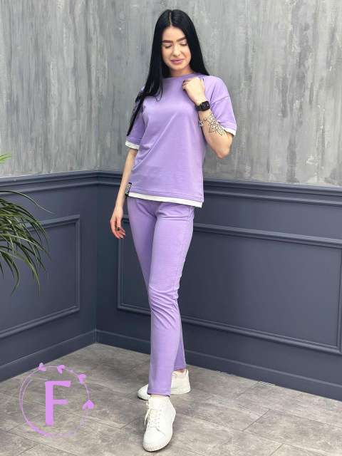 Літній трикотажний костюм-двійка «Summer» оптом | Батал | Розпродаж моделі Лавандовий, 54-56