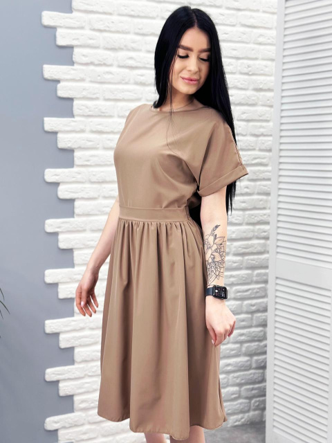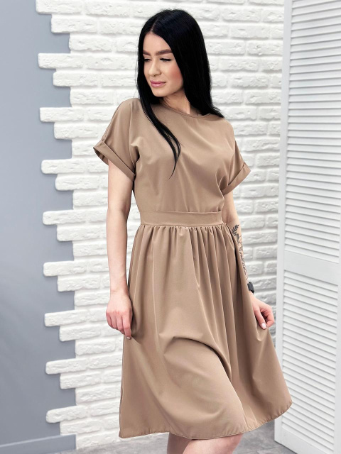 Якщо хочете бути в тренді і увійти в літній сезон на стилі, рекомендуємо придивитися до нашої новинці! Однотонне плаття міді з короткими рукавами – безпрограшний варіант для літнього сезону. Така модель виглядає однаково красиво як з модельної взуттям на підборах, так і зі спортивним взуттям на низькому ходу.