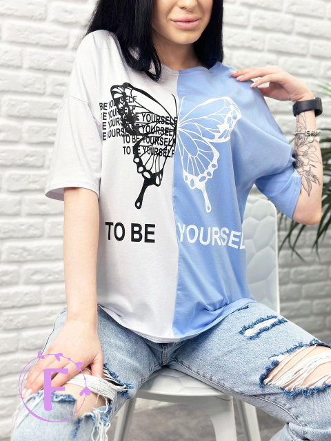 Двокольорова футболка «Butterfly» оптом від виробника | Норма | Розпродаж моделі Блакитний, 42-44
