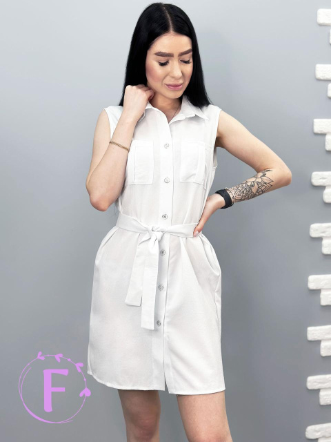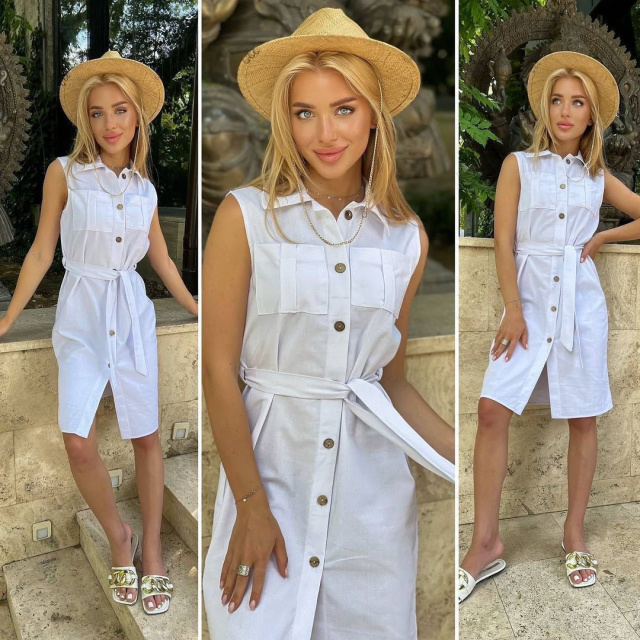 Лляна сукня-сорочка без рукавів «Journey» оптом | Розпродаж моделі Білий, 42-44