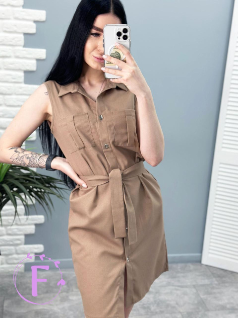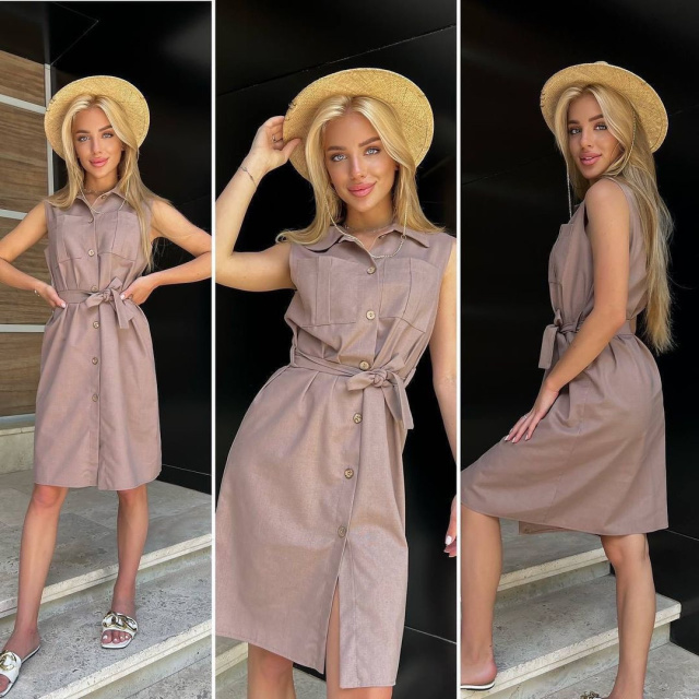 Лляна сукня-сорочка без рукавів «Journey» оптом | Розпродаж моделі Капучіно, 42-44