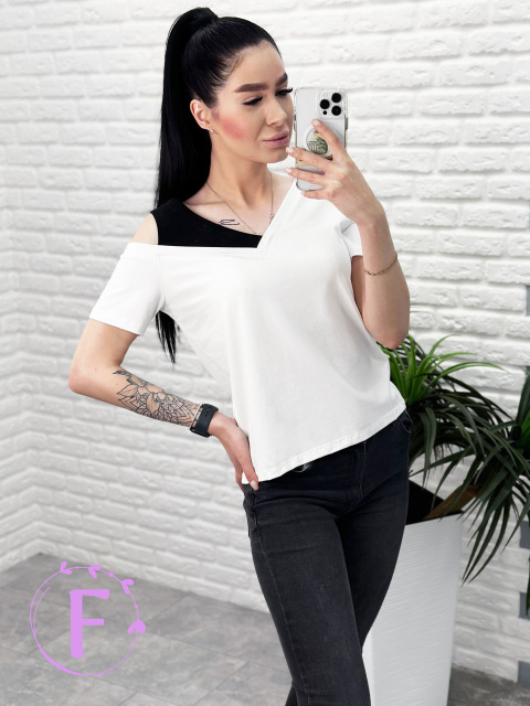 Нова футболка від Fashion Girl успішно увійде до будь-якого літнього гардеробу. Авангардне поєднання чорного та білого кольору можна використовувати як у спортивних, так і у повсякденних чи романтичних образах.