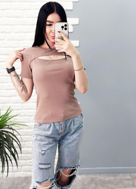 Футболка з вирізом «Bianka» оптом | Батал | Розпродаж моделі Мокко, 50-52