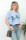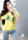 Блузка-футболка з принтом має круглу горловину та короткі рукави з відворотами. Неглибокий виріз коміра підкреслює крихкість та візуально подовжує шию. Рукави лише злегка прикривають плечі, що забезпечує максимум комфорту при високій температурі, але не позбавляє можливості носити блузку з діловим одягом.