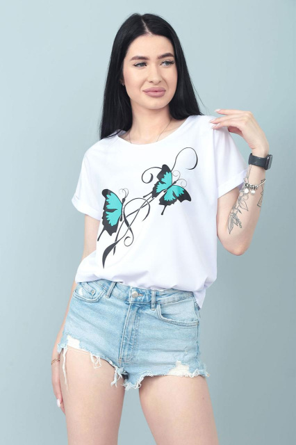 Стильні та практичні блузки-футболки – універсальний предмет жіночого гардеробу, а моделі з принтом – ще й зручний спосіб самовираження. Новинка від Fashion Girl – футболка "Arial" з малюнком метелика – обов'язково знадобиться спекотного літа і внесе різноманітність у стримані та монохромні образи.