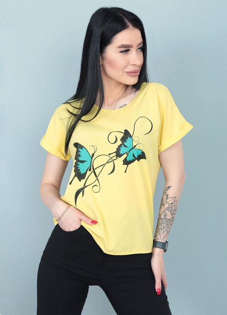 Жіноча блузка-футболка «Arial» оптом | Батал| Розпродаж моделі Жовтий, 50-52