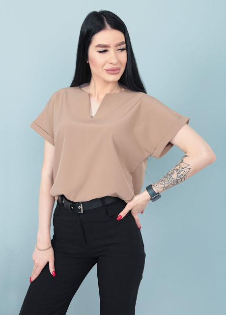 Жіноча блузка з вирізом та коротким рукавом «Fly» оптом | Батал Капучіно, 50-52