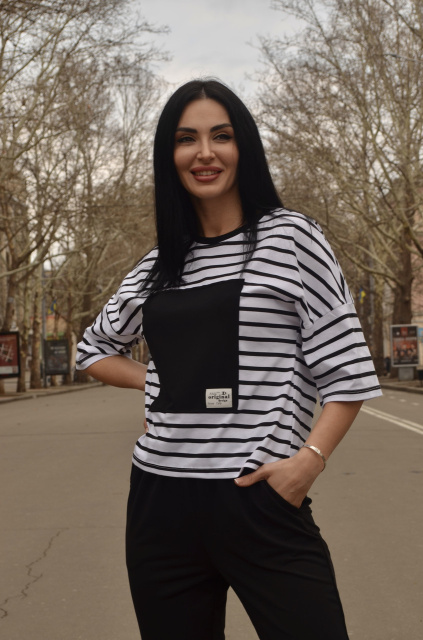 Спортивний костюм "Bridge" Роздріб (не дропшипінг) – 735 грн Також у наявності . Смужка та спортивний стиль – ідеальне поєднання двох літніх трендів. Новий костюм "Bridge" від ТМ Fashion Girl зібрав у собі все, що так люблять активні модниці будь-якої пори року: прямий вільний крій, гарний колір та стильний декор. Особливості моделі Костюм-двійка "Bridge" відрізняється такими особливостями: - вільний крій; - верх – пряма футболка зі смугастим принтом та однотонною нашивкою у колір штанів, низ – прямі спортивні штани з бічними кишенями; - спущена лінія плеча; довжина рукава – до ліктя; - вільні штани з м'якою гумкою на поясі та манжетах; - нашивка-лейбл у нижньому лівому кутку однотонного квадрата. Завдяки універсальному фасону футболку та штани можна носити як у комплекті, так і окремо, комбінуючи їх з іншими речами у спортивному стилі. Вільна футболка з модним принтом буде доречна в гардеробі будь-якої активної жінки. Верх костюма пошитий з якісної турецької кулірки – ніжної та комфортної бавовняної тканини, яка чудово пропускає повітря, вбирає вологу та не викликає алергії. Штани виготовлені з м'якої двонитки. Щоб костюм довго залишався яскравим і приємним на дотик, рекомендується прати його в делікатному режимі, при низькій температурі (до 30 градусів) та окремо від твердих матеріалів (робочого одягу, текстилю та ін.). ТМ Fashion Girl пропонує купити літній спортивний костюм у смужку оптом та за найкращою ціною. У нас завжди хороші умови для оптовиків, дропшиперів, а також організаторів сумісних покупок. Шопінг на fashion-girl.ua – це завжди вигідно, яскраво та просто! Характеристики Стиль:Спортивний Сезон:Літо Довжина футболки:57 см Довжина рукава від горловини:45 см Довжина крокового шва:72 см Довжина бічного шва:97 см Матеріал:Турецький кулір, двунитка Наявність на складі Колір 50-52 Капучино ✓ Джинс ✓ Зелений ✓ Чорний ✓ Шоколадный ✓ ✓ — в наявності (кількість не обмежена). ✗ — немає в наявності (знято з виробництва). АКЦІЇ ТА ЗНИЖКИ ПОДАРУНОК ПРИ КУПІВЛІ ВІД 3-Х ОДИНИЦЬ При купівлі від 3 од. будь-якого товару в одній посилці, не включаючи позицій з розпродажу та розділу "Все по 95" ДОДАТКОВА ЗНИЖКА При покупці від 25 од. будь-якого товару в одній посилці (акції не підсумовуються) Наші переваги Весь товар в наявності Відправка за 24 години 100% як на фото Найвигідніші ціни Обмін та повернення Гарантія якості