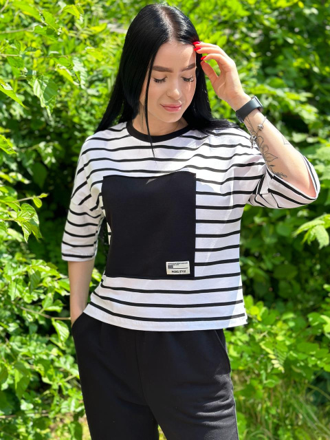Спортивний костюм "Bridge" Роздріб (не дропшипінг) – 735 грн Також у наявності . Смужка та спортивний стиль – ідеальне поєднання двох літніх трендів. Новий костюм "Bridge" від ТМ Fashion Girl зібрав у собі все, що так люблять активні модниці будь-якої пори року: прямий вільний крій, гарний колір та стильний декор. Особливості моделі Костюм-двійка "Bridge" відрізняється такими особливостями: - вільний крій; - верх – пряма футболка зі смугастим принтом та однотонною нашивкою у колір штанів, низ – прямі спортивні штани з бічними кишенями; - спущена лінія плеча; довжина рукава – до ліктя; - вільні штани з м'якою гумкою на поясі та манжетах; - нашивка-лейбл у нижньому лівому кутку однотонного квадрата. Завдяки універсальному фасону футболку та штани можна носити як у комплекті, так і окремо, комбінуючи їх з іншими речами у спортивному стилі. Вільна футболка з модним принтом буде доречна в гардеробі будь-якої активної жінки. Верх костюма пошитий з якісної турецької кулірки – ніжної та комфортної бавовняної тканини, яка чудово пропускає повітря, вбирає вологу та не викликає алергії. Штани виготовлені з м'якої двонитки. Щоб костюм довго залишався яскравим і приємним на дотик, рекомендується прати його в делікатному режимі, при низькій температурі (до 30 градусів) та окремо від твердих матеріалів (робочого одягу, текстилю та ін.). ТМ Fashion Girl пропонує купити літній спортивний костюм у смужку оптом та за найкращою ціною. У нас завжди хороші умови для оптовиків, дропшиперів, а також організаторів сумісних покупок. Шопінг на fashion-girl.ua – це завжди вигідно, яскраво та просто! Характеристики Стиль:Спортивний Сезон:Літо Довжина футболки:57 см Довжина рукава від горловини:45 см Довжина крокового шва:72 см Довжина бічного шва:97 см Матеріал:Турецький кулір, двунитка Наявність на складі Колір 50-52 Капучино ✓ Джинс ✓ Зелений ✓ Чорний ✓ Шоколадный ✓ ✓ — в наявності (кількість не обмежена). ✗ — немає в наявності (знято з виробництва). АКЦІЇ ТА ЗНИЖКИ ПОДАРУНОК ПРИ КУПІВЛІ ВІД 3-Х ОДИНИЦЬ При купівлі від 3 од. будь-якого товару в одній посилці, не включаючи позицій з розпродажу та розділу "Все по 95" ДОДАТКОВА ЗНИЖКА При покупці від 25 од. будь-якого товару в одній посилці (акції не підсумовуються) Наші переваги Весь товар в наявності Відправка за 24 години 100% як на фото Найвигідніші ціни Обмін та повернення Гарантія якості