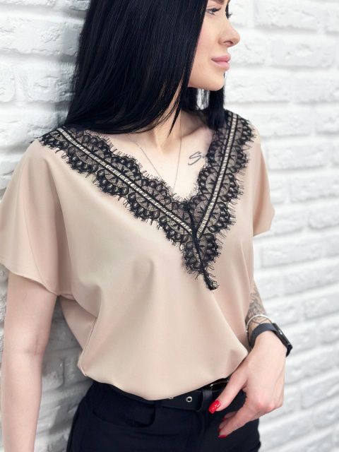 Жіноча блузка з вирізом та мереживом "Brenda"