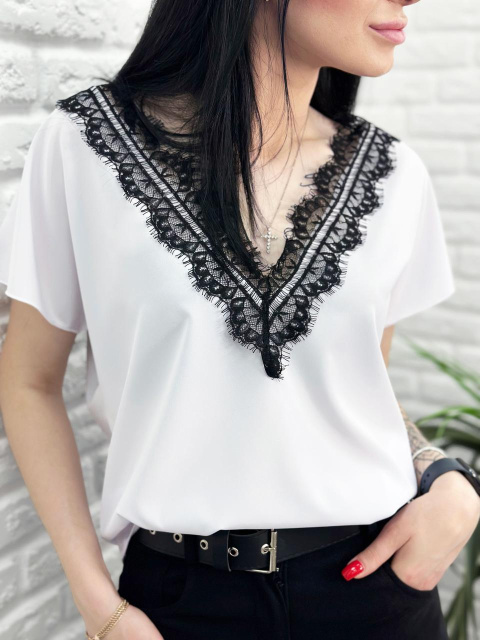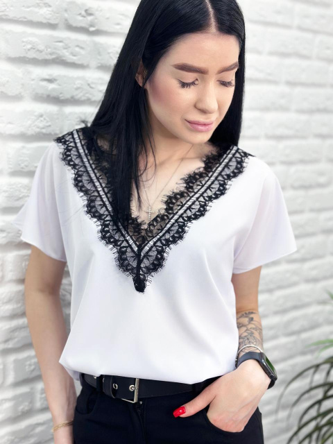 Жіноча блузка з вирізом та мереживом "Brenda" Роздріб (не дропшипінг) – 285 грн Також в наявності . Жіночий декор у вигляді мережив, воланів