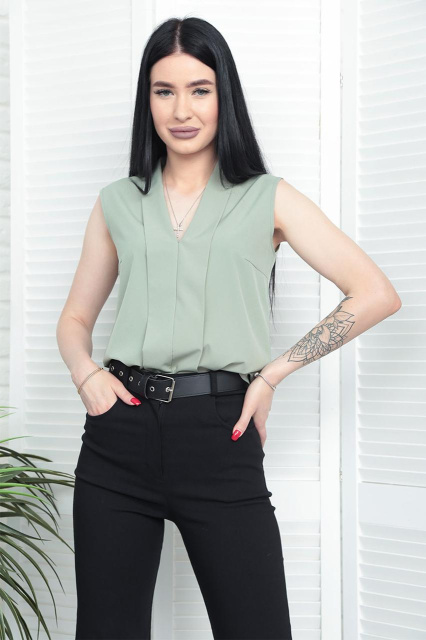 UA MarketВінницяGhjhgТовари та послугиБлузки та сорочки жіночі оптомЛітня блузка без рукавів «Valerie» оптом | Норма і батал | Розпродаж моделі Оливковий, 46-48