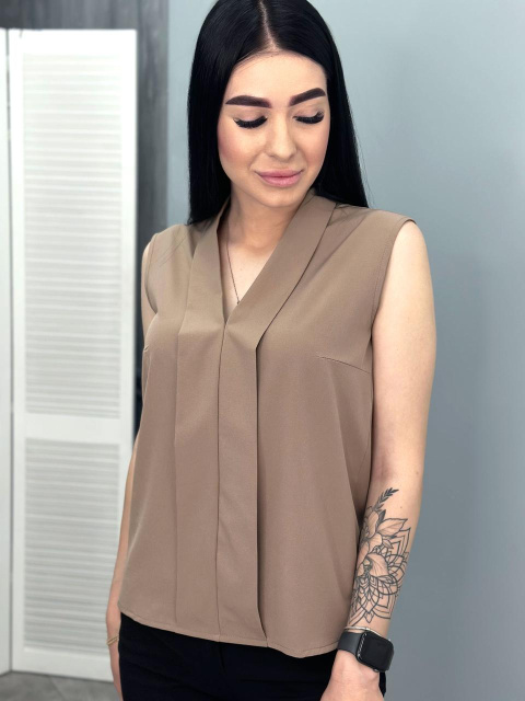 UA MarketВінницяGhjhgТовари та послугиЖіночий одяг батал (розмір 50+) оптомБлузки батал оптомЛітня блузка без рукавів «Valerie» оптом | Батал | Розпродаж моделі Капучіно, 50-52