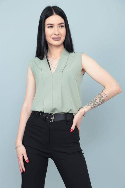 UA MarketВінницяGhjhgТовари та послугиЖіночий одяг батал (розмір 50+) оптомБлузки батал оптомЛітня блузка без рукавів «Valerie» оптом | Батал | Розпродаж моделі Оливковий, 50-52
