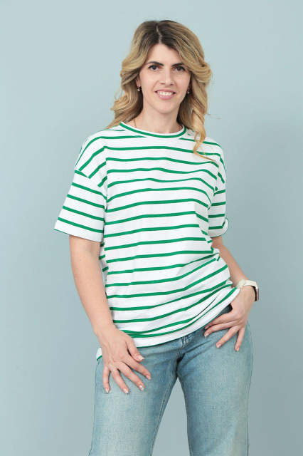 UA MarketВінницяGhjhgТовари та послугиФутболки жіночі оптомПодовжена футболка в смужку «Modis» оптом від виробника | Норма і батал Зелений, 50-52