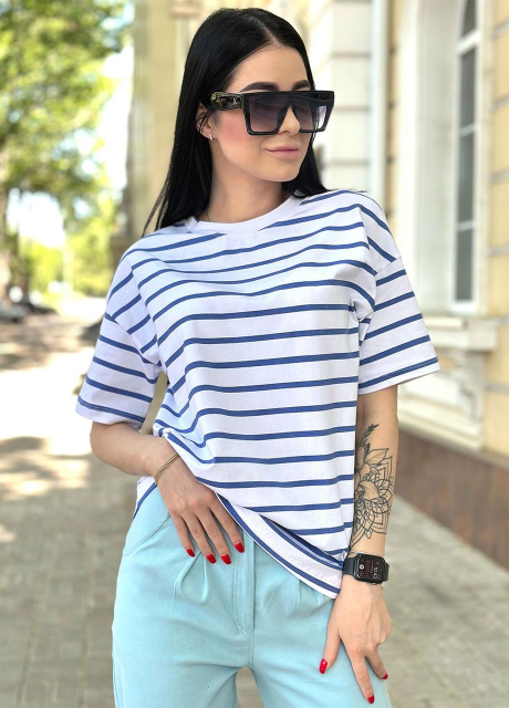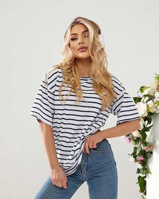 UA MarketВінницяGhjhgТовари та послугиФутболки жіночі оптомПодовжена футболка в смужку «Modis» оптом від виробника | Норма і батал Джинс, 50-52