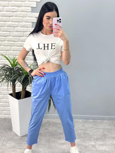 UA MarketВінницяGhjhgТовари та послугиЖіночий одяг батал (розмір 50+) оптомШтани та лосини жіночі батал оптомЛітні штани з підворотом «Hunter» оптом | Батал | Розпродаж моделі Блакитний, 50-52