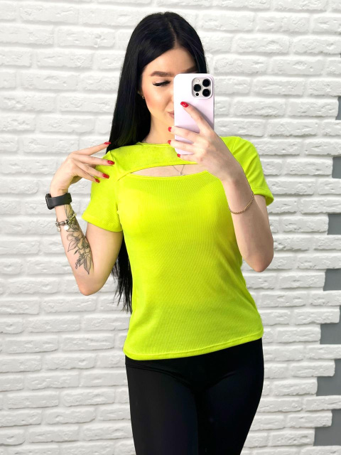UA MarketВінницяGhjhgТовари та послугиФутболки жіночі оптомФутболка з вирізом «Bianka» оптом | Норма| Розпродаж моделі 46-48, Лимонний (неон)
