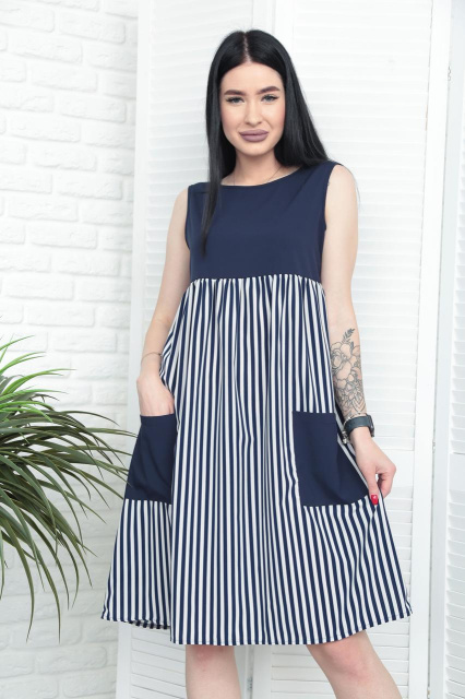 Сукня з завищеною талією "Band" Роздріб (не дропшипінг) – 350 грн Бажаєте отримати модний образ та підкреслити всі переваги фігури? Fashion Girl знає як! Нова сукня А-силуету "Band" прикрасить будь-яку модницю: вдалий фасон створює правильні пропорції тіла, а стильний актуальний принт ідеально вписується як романтичні, так і повсякденні образи. Головна перевага моделі – її універсальність. З босоніжками та лаконічними аксесуарами ви зможете створити стильний комплект для роботи, а з кедами та рюкзачком – модним образом у стилі кежуал. Особливості моделі Головні особливості сукні "Band": - А-силует, завищена талія; - довжина міді (до коліна); - овальна горловина; - без рукавів та застібки; - 2 зручні кишені; - комбінований колір: однотонний ліф та спідниця у вертикальну смужку. Завдяки напіввільному крою та завищеній талії сукня підійде для будь-якого типу фігури. Стрункі модниці зможуть підкреслити тендітність і витонченість, а пишні пані – зробити акцент на верхній частині та приховати зайві сантиметри в області талії та стегон. Смугастий принт і довжина міді - стильний тандем, який не втрачає популярності в літні сезони. Літня сукня "Band" пошита з софту. Ця тканина не тільки легка та повітряна, але й дуже зручна у носінні. Матеріал приємно відчувається на тілі, швидко сохне і не дратує шкіру навіть у спеку. Щоб виріб зберіг форму та насичений колір, рекомендується прати його за низької температури (30 градусів). Купити одяг оптом у Fashion Girl На ви завжди знайдете найактуальніші та стильні моделі жіночого одягу оптом. Ми пропонуємо своїм клієнтам вигідні умови співробітництва та якісні вироби за доступними цінами. Замовити літні сукні оптом від виробникаTM Fashion Girl можна на сайті, за телефоном +380 (63) 493-24-24, за допомогою Viber, Telegram або e-mail. Характеристики Стиль:Молодіжний Сезон:Літо Довжина сукні:96-98 см Напівобхват грудей:43-50 см Матеріал:Софт Наявність на складі Колір 42-44 46-48 50-52 Темно-синій ✓ ✗ ✗ Черный ✓ ✓ ✗ ✓ — в наявності (кількість обмежена). ✗ — немає в наявності (знято з виробництва). АКЦІЇ ТА ЗНИЖКИ ПОДАРУНОК ПРИ КУПІВЛІ ВІД 3-Х ОДИНИЦЬ При купівлі від 3 од. будь-якого товару в одній посилці, не включаючи позицій з розпродажу та розділу "Все по 95" ДОДАТКОВА ЗНИЖКА При покупці від 25 од. будь-якого товару в одній посилці (акції не підсумовуються) Наші переваги Весь товар в наявності Відправка за 24 години 100% як на фото Найвигідніші ціни Обмін та повернення Гарантія якості