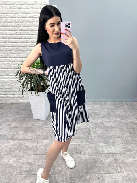 Сукня з завищеною талією «Band» оптом | Норма і батал | Розпродаж моделі Темно-синій, 42-44