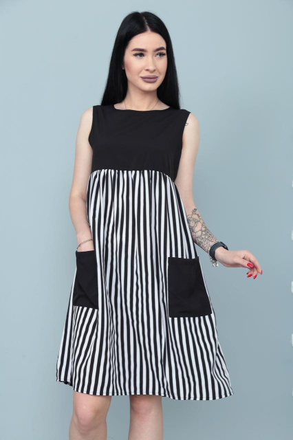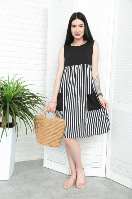 - комбінований колір: однотонний ліф та спідниця у вертикальну смужку.