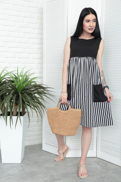Смугастий принт і довжина міді - стильний тандем, який не втрачає популярності в літні сезони.