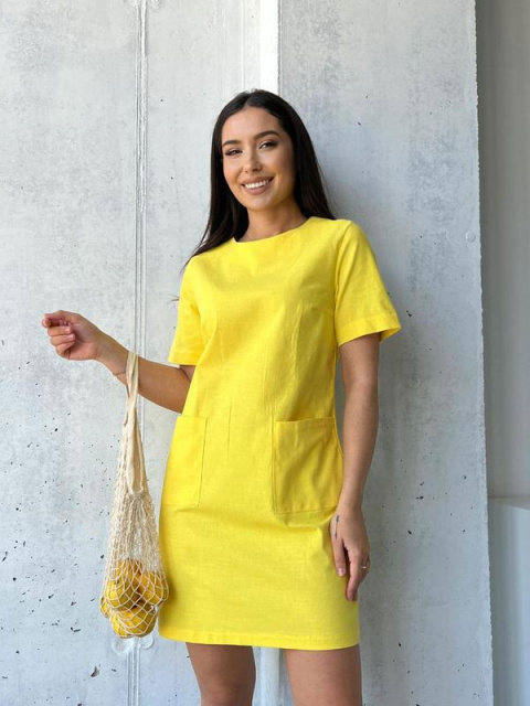 Літня сукня з кишенями «Tiffany» оптом | Розпродаж моделі Жовтий, 46-48