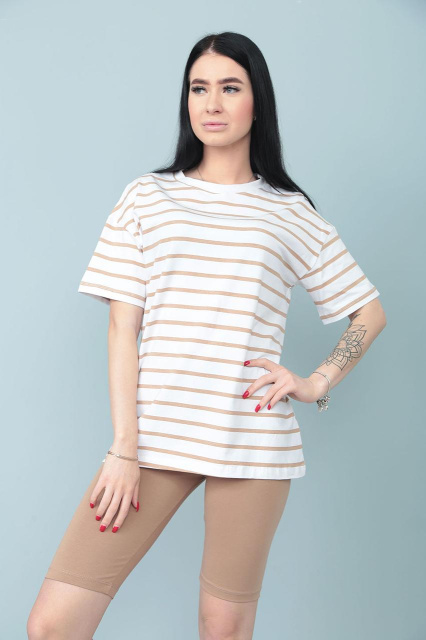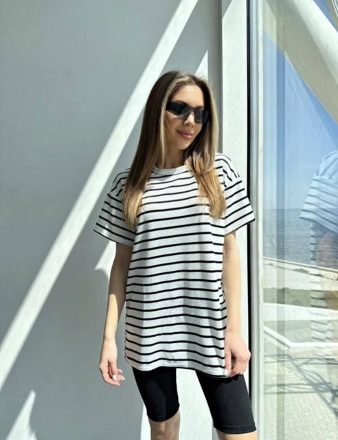 Костюм з велосипедками "Balance" Роздріб (не дропшипінг) – 475 грн Також в наявності . У спекотні дні дуже важливо знайти баланс між модою та комфортом. Новинка від Fashion Girl – спортивний костюм "Balance" – має трендовий крій, підкреслює струнку фігуру і залишається зручним навіть при активному русі. Особливості моделі Літній костюм "Balance" – це двійка у спортивному стилі, яка складається з вільної подовженої футболки та велосипедок. Модель має кілька особливостей: - вільний крій; - футболка з принтом у горизонтальну смужку, однотонні велосипедки; - лінія плеча спущена, довжина рукава – до ліктя; - пояс із пружною широкою резинкою (ширина поясу – 5 см). І футболка, і велосипедки виготовлені з якісного турецького куліра (бавовни). Цей матеріал не тільки добре пропускає повітря і вбирає воду, та й непогано тягнеться. Незважаючи на облягаючий крій штанів, модниця почуватиметься комфортно і бездоганно. Завдяки поєднанню довгої футболки та велосипедок костюм "Balance" візуально витягує силует, подовжує ноги та підкреслює стрункі ноги. Модель можна носити як комплектом, так і окремо. Щоб костюм довго залишався яскравим і приємним на дотик, рекомендується прати його в делікатному режимі, при низькій температурі (до 30 градусів) та окремо від речей із шорстких матеріалів (робочого одягу, текстилю та ін.). Якщо вам сподобалась стильна спортивна модель, просто натисніть кнопку "Купити" або напишіть нам у месенджери або на email. Fashion Girl гарантує повну відповідність товару фото, швидку обробку та відправлення замовлень! Характеристики Стиль: Casual Сезон:Літо Довжина від плеча:73 см Довжина рукава від горловини:39 см Напівобхват грудей:58 см Довжина штанів:56 см Кроковий шов:29 см Матеріал: Турецький кулір Наявність на складі Колір 50-52 Чорний ✓ Джинс ✓ Капучино ✓ Зелений ✓ ✓ — в наявності (кількість не обмежена) ✗ — немає в наявності (знято з виробництва). АКЦІЇ ТА ЗНИЖКИ ПОДАРУНОК ПРИ КУПІВЛІ ВІД 3-Х ОДИНИЦЬ При купівлі від 3 од. будь-якого товару в одній посилці, не включаючи позицій з розпродажу та розділу "Все по 95" ДОДАТКОВА ЗНИЖКА При покупці від 25 од. будь-якого товару в одній посилці (акції не підсумовуються) Наші переваги Весь товар в наявності Відправка за 24 години 100% як на фото Найвигідніші ціни Обмін та повернення Гарантія якості