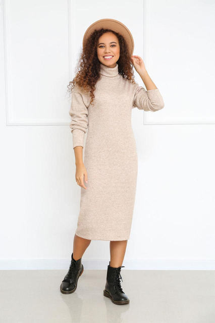 UA MarketВінницяGhjhgТовари та послугиЖіночий одяг батал (розмір 50+) оптомСукні батал оптомТепле ангорове плаття міді з високим коміром «Amina» оптом | Батал| Розпродаж моделі Бежевий, 50-52