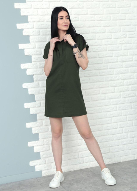 Жіноче лляне плаття літнє, безсумнівно, підкорить серця українських модниць своїм дизайном. На перший погляд може здатися, що це проста модель прямого вільного крою. Але вся принадність цього плаття в його скромної стриманості. Закритий верх виробу органічно компенсується його короткою довжиною до середини стегна. Плаття має комір-стійку, короткі рукавчики з закотами й одну нагрудну кишеню.