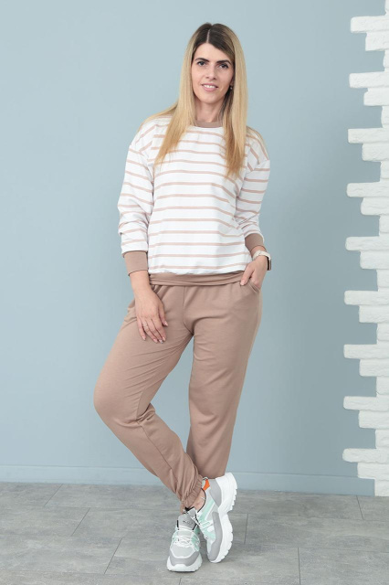 Костюм-двійка "Delight" пошитий у спортивному стилі з урахуванням його зручності та універсальності. Повсякденний демісезонний комплект складається зі спортивних штанів на гумці та вільного світшота.