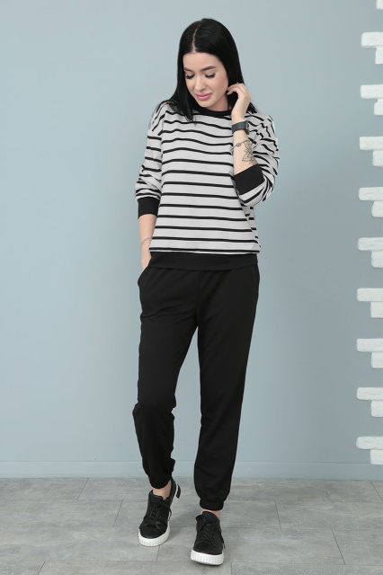 Незважаючи на спортивний стиль, смугаста модель досить універсальна. Помінявши взуття та аксесуари, будь-яка модниця зможе перетворити повсякденний прогулянковий комплект на недбало-романтичний образ для прогулянки з коханою людиною.