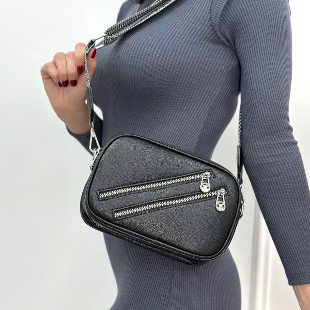Маленька жіноча сумочка з блискавками «Look» оптом Чорний