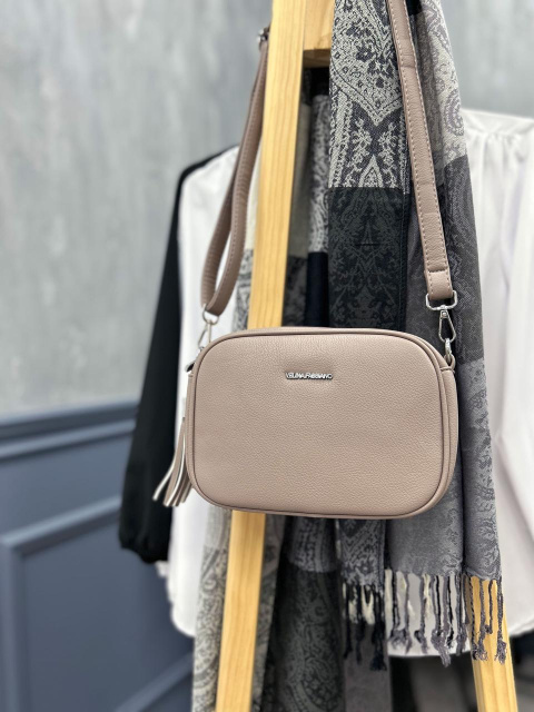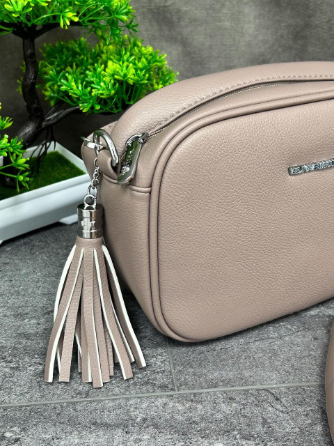 Стильна сумочка "Lovely" має одне велике відділення з двома внутрішніми кишеньками. Модель застібається на "блискавку" і прикрашена гарним пензликом з екошкіри. Ззаду на сумці розташована додаткова кишеня на "блискавці", в яку зручно класти невеликі плоскі предмети, документи чи купюри.