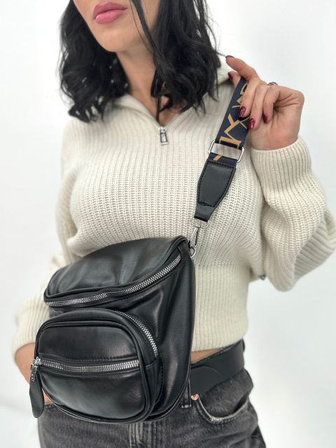 Широкий ремінь сумки має яскравий золотистий принт, який додає фарби в образ. Ремінець пристібається на карабінах та регулюється по довжині.