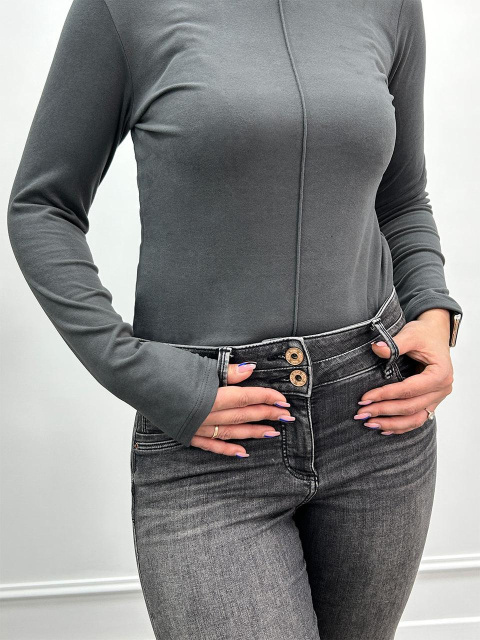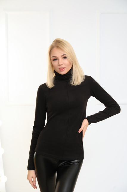 Жіноча тепла базова водолазка має приталений крій, довгі рукави та високу горловину. Спереду виріб прикрашений декоративним рядком по всій довжині. В наявності п'ять базових відтінків, без яких важко уявити осінньо-зимовий гардероб сучасної жінки.