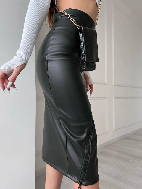 Шкіряні спідниці міді з зухвалими розрізами та незвичайними елементами – тренд сезону. З новинкою від Fashion Girl модниці зможуть виглядати стильно, елегантно та із родзинкою. Шкіряну спідницю міді "Lorren" можна носити з топами, водолазками, діловими блузами або боді, що облягають.
