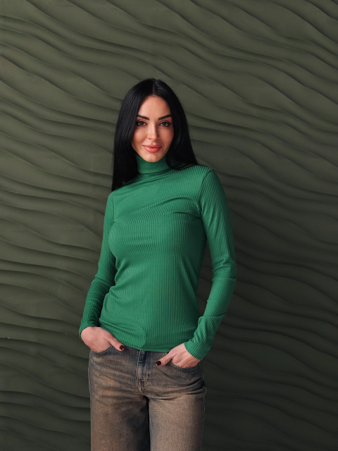 Жіночий гольф в рубчик «Made» оптом | Батал 54-56, Зелений