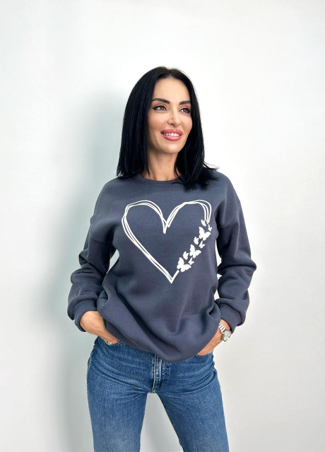 Утеплений світшот з принтом «Heart» оптом | Батал Графіт, 50-52