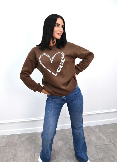 UA MarketВінницяGhjhgТовари та послугиЖіночий одяг батал (розмір 50+) оптомКофти жіночі батал оптомУтеплений світшот з принтом «Heart» оптом | Батал Шоколадний, 50-52