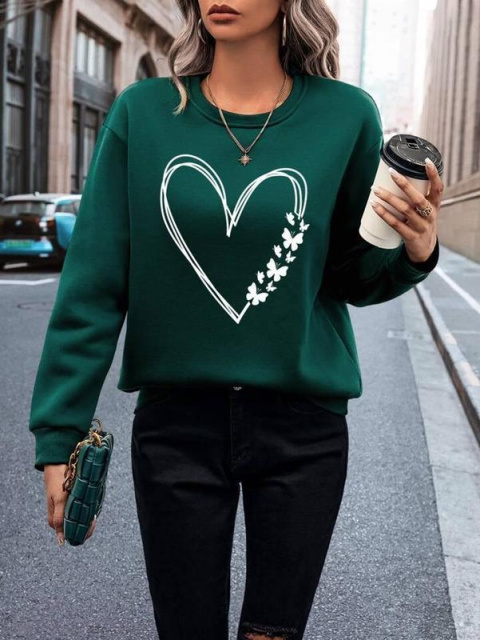 UA MarketВінницяGhjhgТовари та послугиЖіночий одяг батал (розмір 50+) оптомКофти жіночі батал оптомУтеплений світшот з принтом «Heart» оптом | Батал Темно-зелений, 50-52